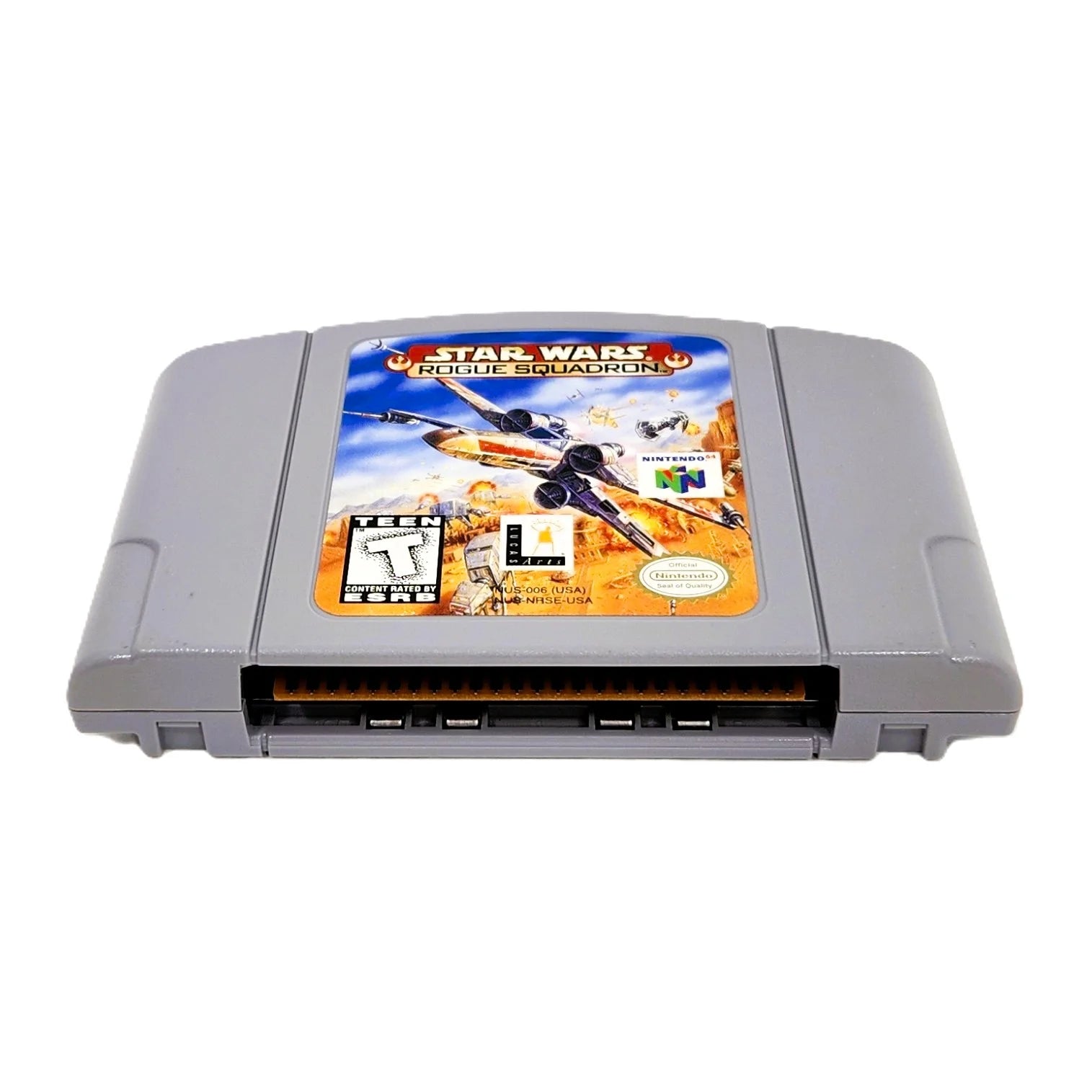 - Notes: A nicely preserved Nintendo 64 cartridge of Star Wars: Rogue Squadron, this copy is in very good condition with light, typical signs of handling and a clean overall appearance. The label remains fully intact with good detail and minor surface wear, giving it strong display appeal. The cartridge shell is in solid shape, and the contacts are clean and tested for consistent, reliable performance. A well-presented example that’s ready for your next Rebel flight mission.
