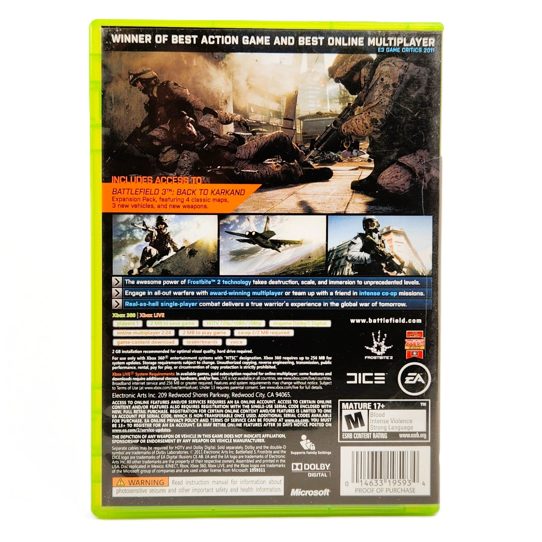 - Notes: Authentic Xbox 360 copy of Battlefield 3 Limited Edition in its original case, with both discs scratch-free and tested. Clean example ready to play or display.