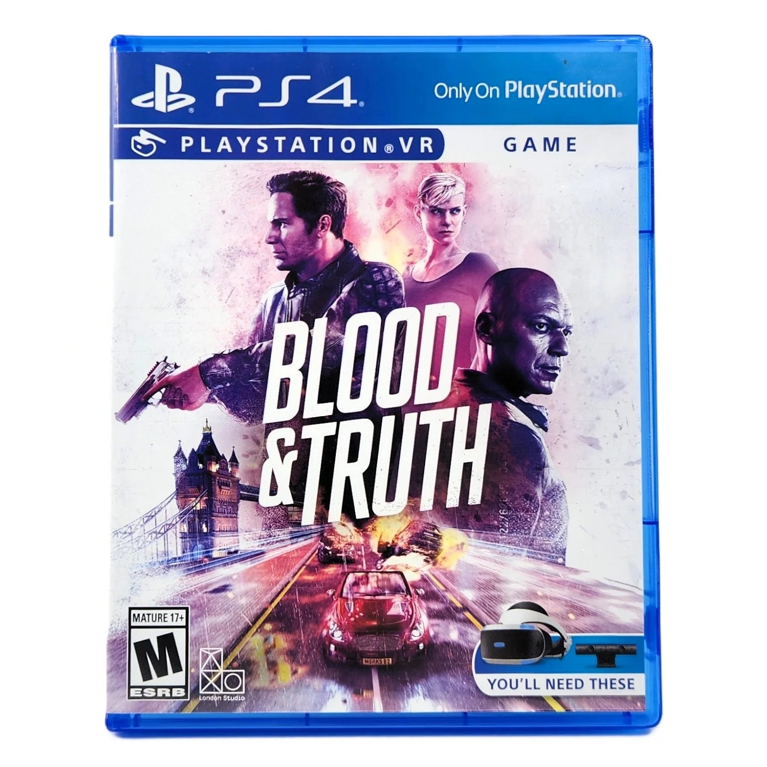 - Notes: Nice copy of Blood & Truth presented in a fresh aftermarket replacement case with artwork included; disc remains scratch-free and tested for reliable play. A solid VR shooter ready for your next cinematic mission.