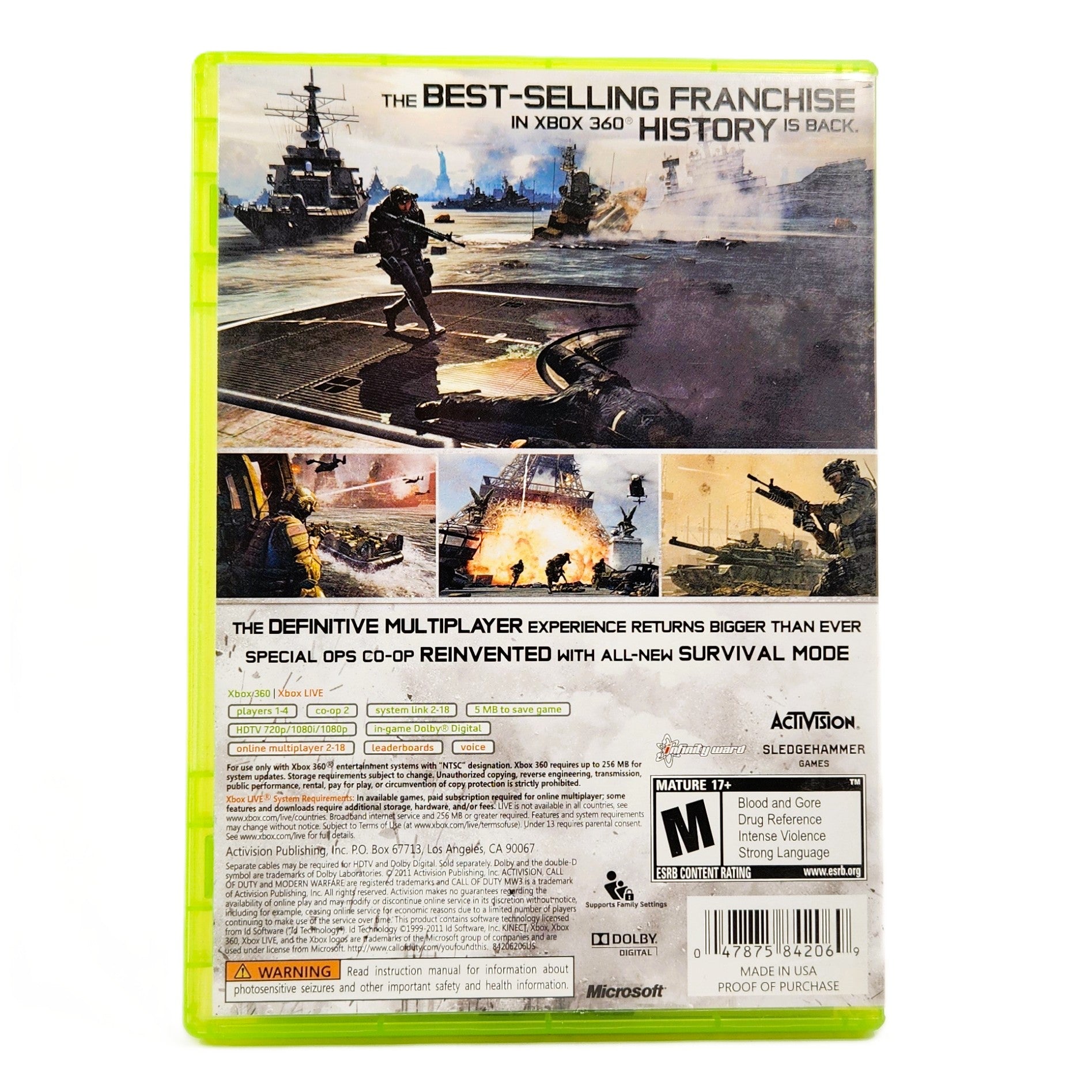 - Notes: Original Xbox 360 Modern Warfare 3 complete with OEM case, manual, and flawless disc. Tested and ready for reliable play.