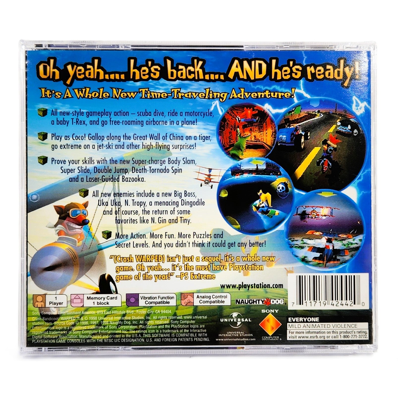 Crash Bandicoot: Warped catapulted Naughty Dog’s beloved marsupial to new heights on the PlayStation 1, delivering one of the most polished and exhilarating 3D platformers of its era. Released in 1998 and published by Sony, this third entry in the Crash Bandicoot series sends Crash and Coco on a globe-trotting quest through time to stop the evil Dr. Neo Cortex and Uka Uka from taking over the world. Set across vibrant time periods—from ancient Egypt to medieval castles and the far future—every level bursts with creativity, humor, and fast-paced challenge.