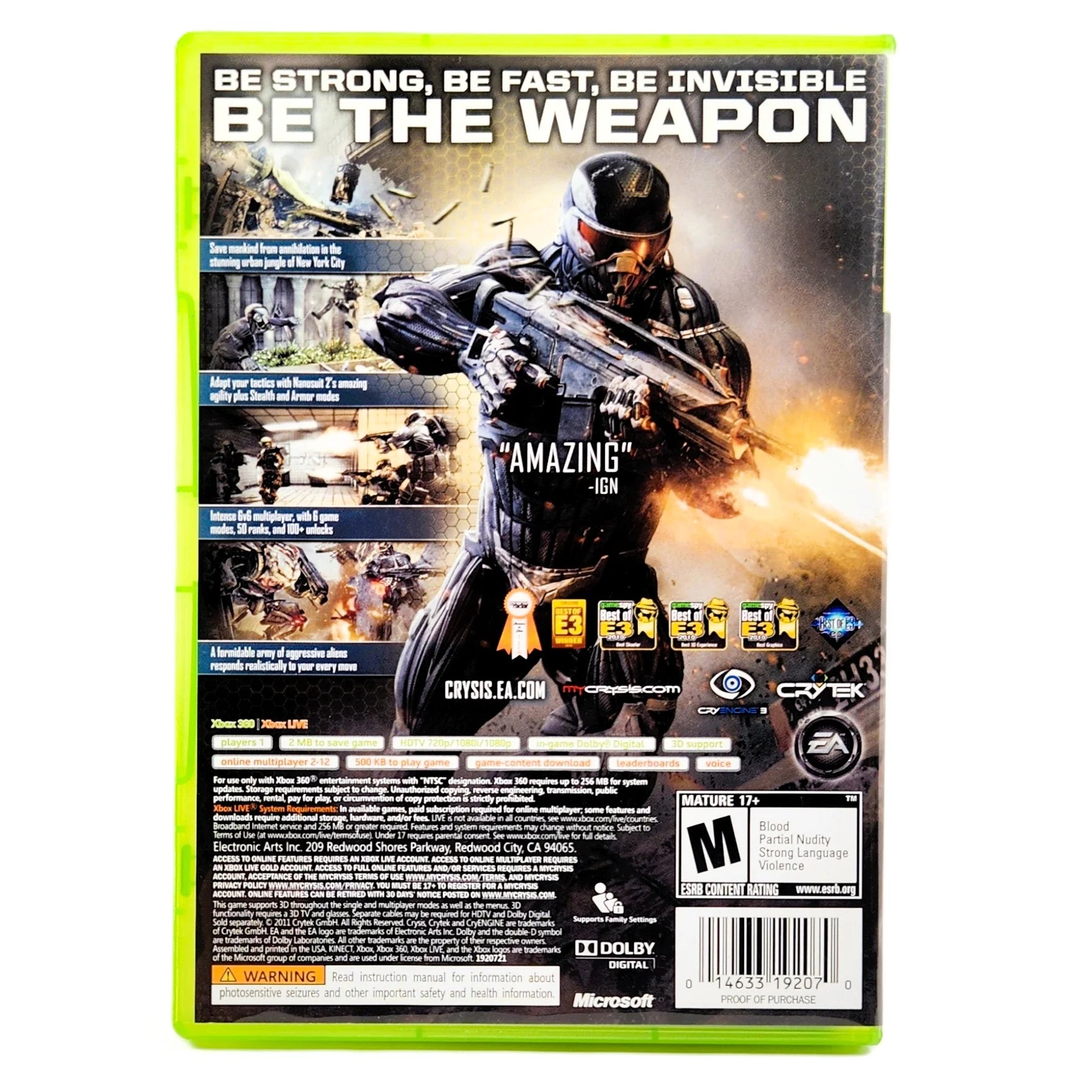 - Notes: Crysis 2 for Xbox 360 is housed in a fresh aftermarket replacement case with original artwork included; disc is clean, scratch-free, and fully tested. A reliable copy of a visually notable Xbox 360-era shooter, ready for dependable play.