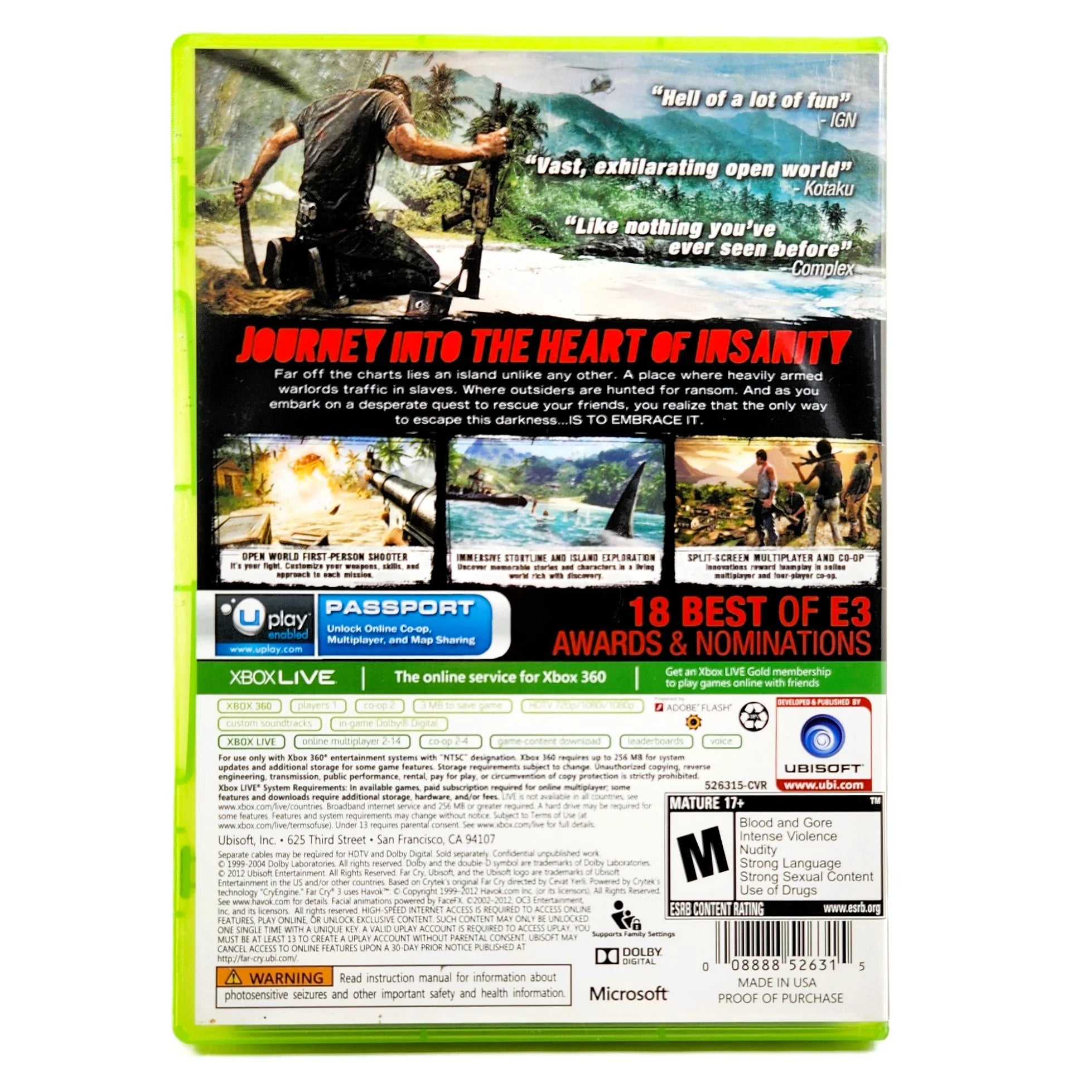 - Notes: Far Cry 3 for Xbox 360 comes with the original artwork and manual, housed in a fresh aftermarket replacement case; disc is clean, scratch-free, and fully tested. A clean copy of a standout entry in the Far Cry series, ready to enjoy.
