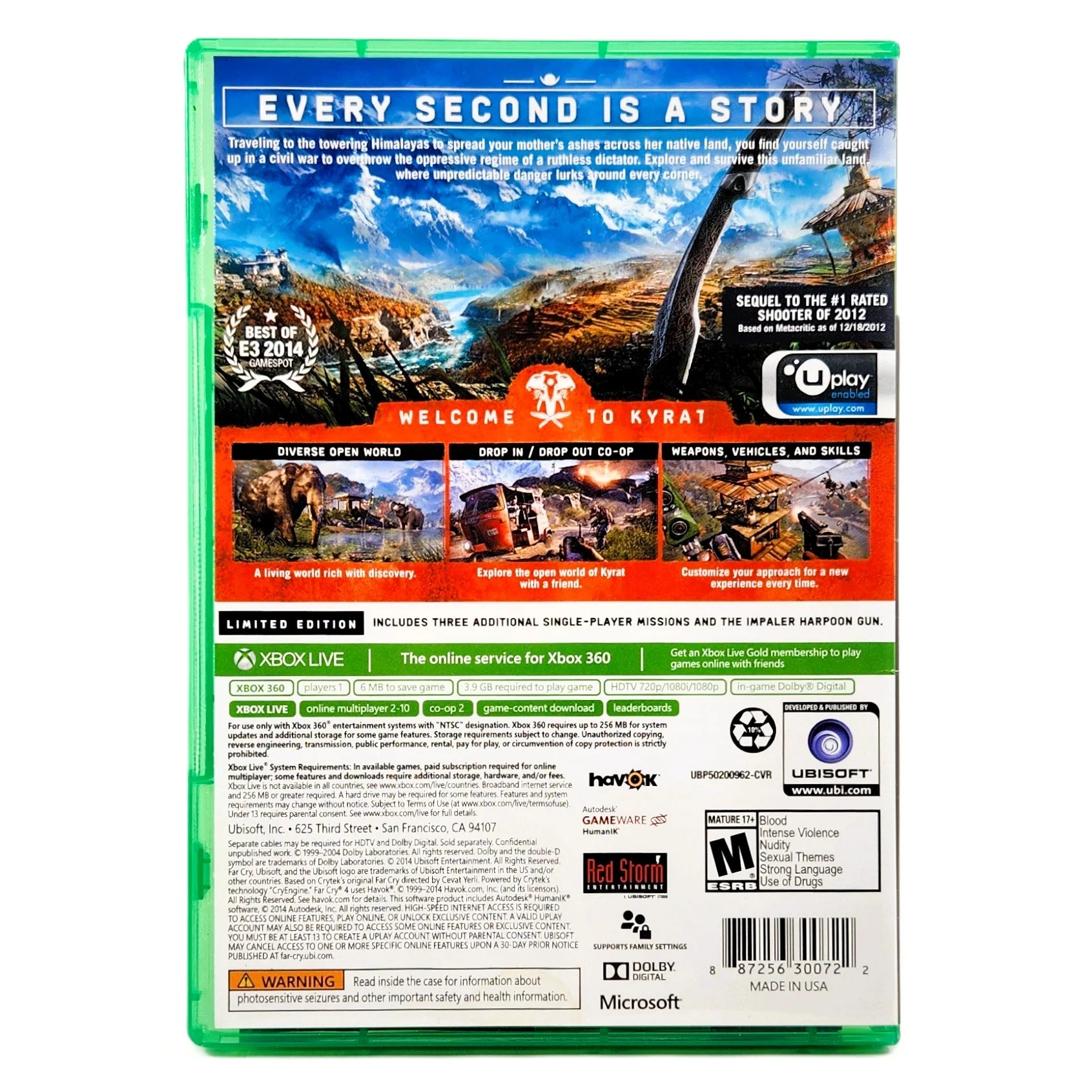 - Notes: Far Cry 4 [Limited Edition] for Xbox 360 includes the original artwork and is housed in a fresh aftermarket replacement case; disc is clean, scratch-free, and fully tested. Priced as a value-friendly option for players looking to add this edition at a great price.