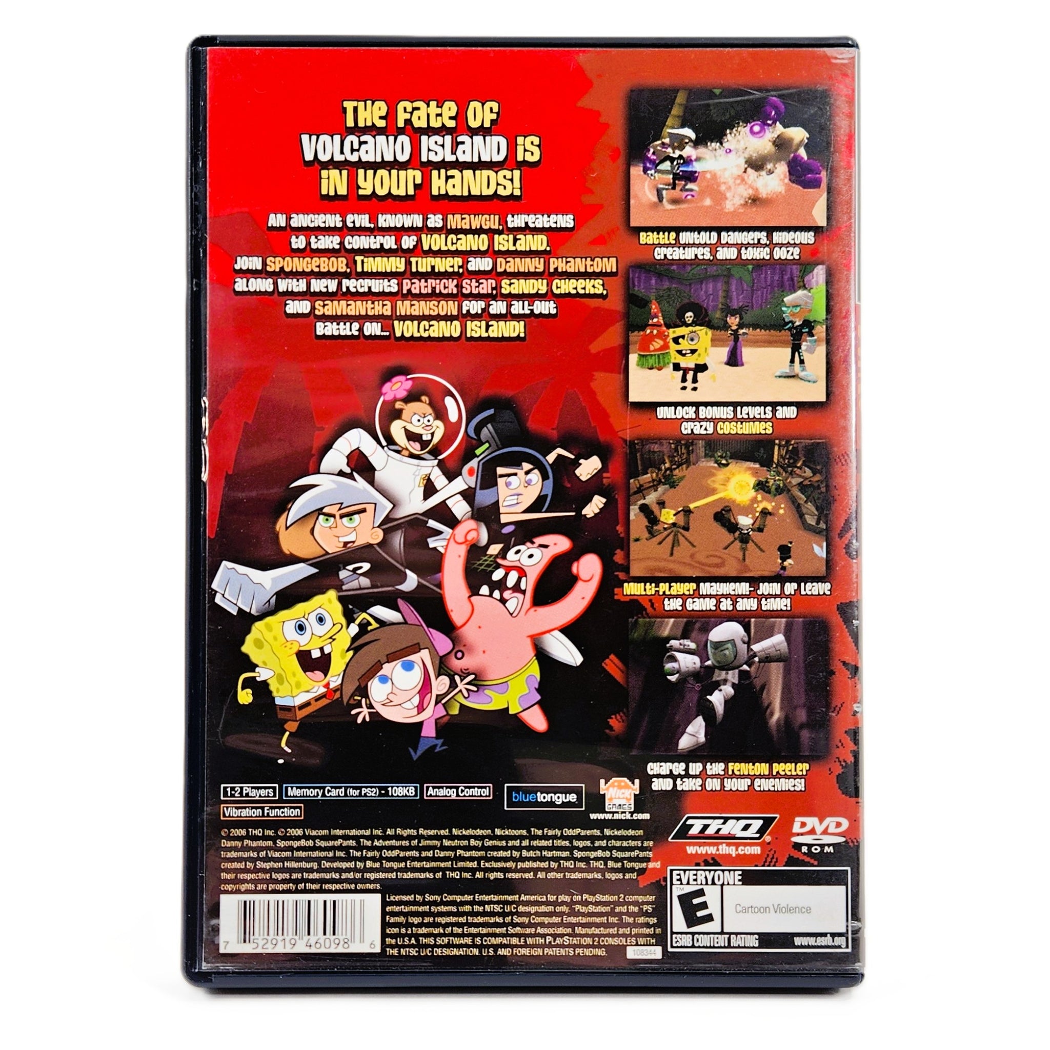 Nicktoons: Battle for Volcano Island brings together a crossover cast of beloved Nickelodeon characters for a fun action adventure on the PlayStation 2. When an evil spirit known as Mawgu threatens to engulf a mysterious island, heroes from multiple Nicktoons worlds—including SpongeBob SquarePants, Danny Phantom, Timmy Turner, and others—are transported to stop him. Players explore colorful environments, battle enemies, and solve light puzzles in a kid-friendly quest full of humor and cartoon charm.