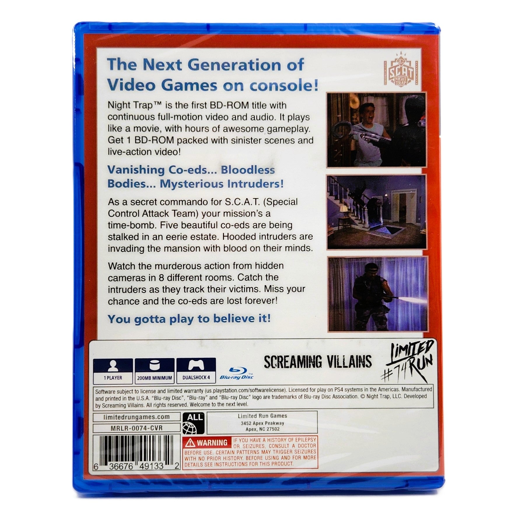 Night Trap was one of the games that led to the creation of the ESRB rating system in the early 1990s due to its controversial content. Decades later, its PS4 reissue by Limited Run Games transformed that notoriety into nostalgia, marking one of the earliest and most sought-after FMV revivals on modern consoles. Both the red and blue cover variants include reversible artwork, allowing collectors to choose their preferred display.