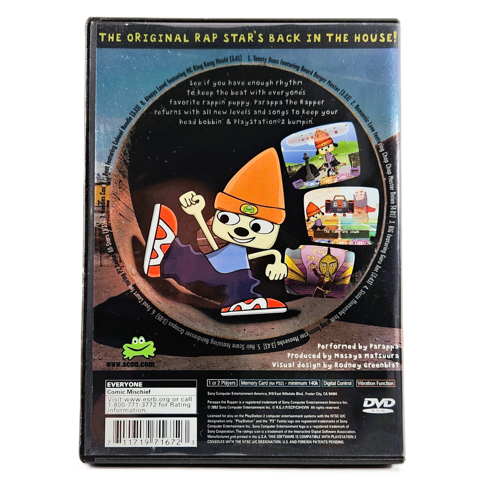 With its distinctive paper-cut art style, playful humor, and infectious soundtrack, PaRappa the Rapper 2 stands out as one of the most unique titles in the PS2 library. Whether you’re chasing high scores, enjoying the comedic cutscenes, or revisiting one of Sony’s earliest rhythm gaming icons, it’s a must-have for fans of quirky, music-driven adventures and a standout collectible for PlayStation enthusiasts.