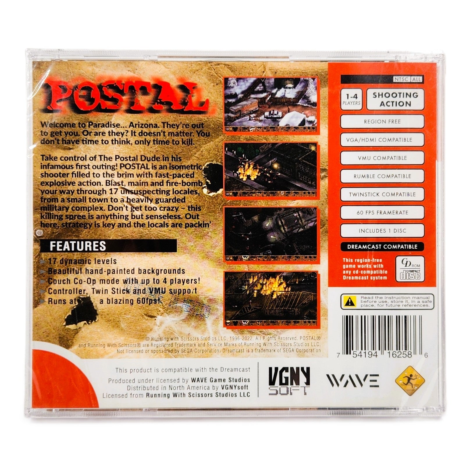 Released in 2022, this edition marks one of the rarest and most recent officially licensed retail titles for the Sega Dreamcast. Its physical release through Wave Game Studios bridges generations of gaming history, connecting late-’90s PC culture with the enduring Dreamcast collector scene. For fans of unique physical releases and gaming preservation, Postal stands as both a conversation piece and a cornerstone of modern retro game collecting.