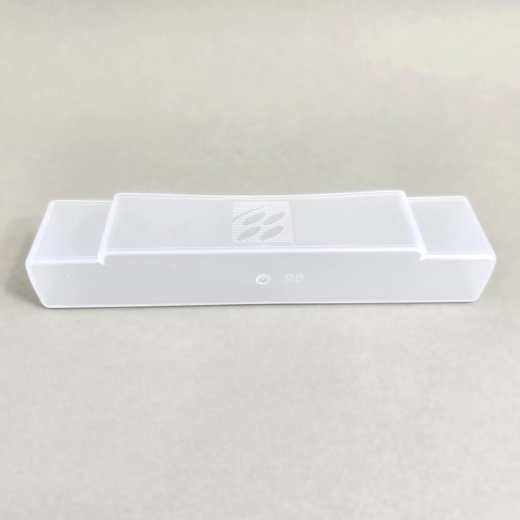 These official Super Nintendo Cartridge Dust Covers were produced by Nintendo to protect the exposed contact pins on SNES game cartridges during storage. Made from clear plastic and marked with the SNES logo, these OEM covers slide securely over the bottom edge of the cartridge, helping shield the connector pins from dust, debris, and accidental contact.