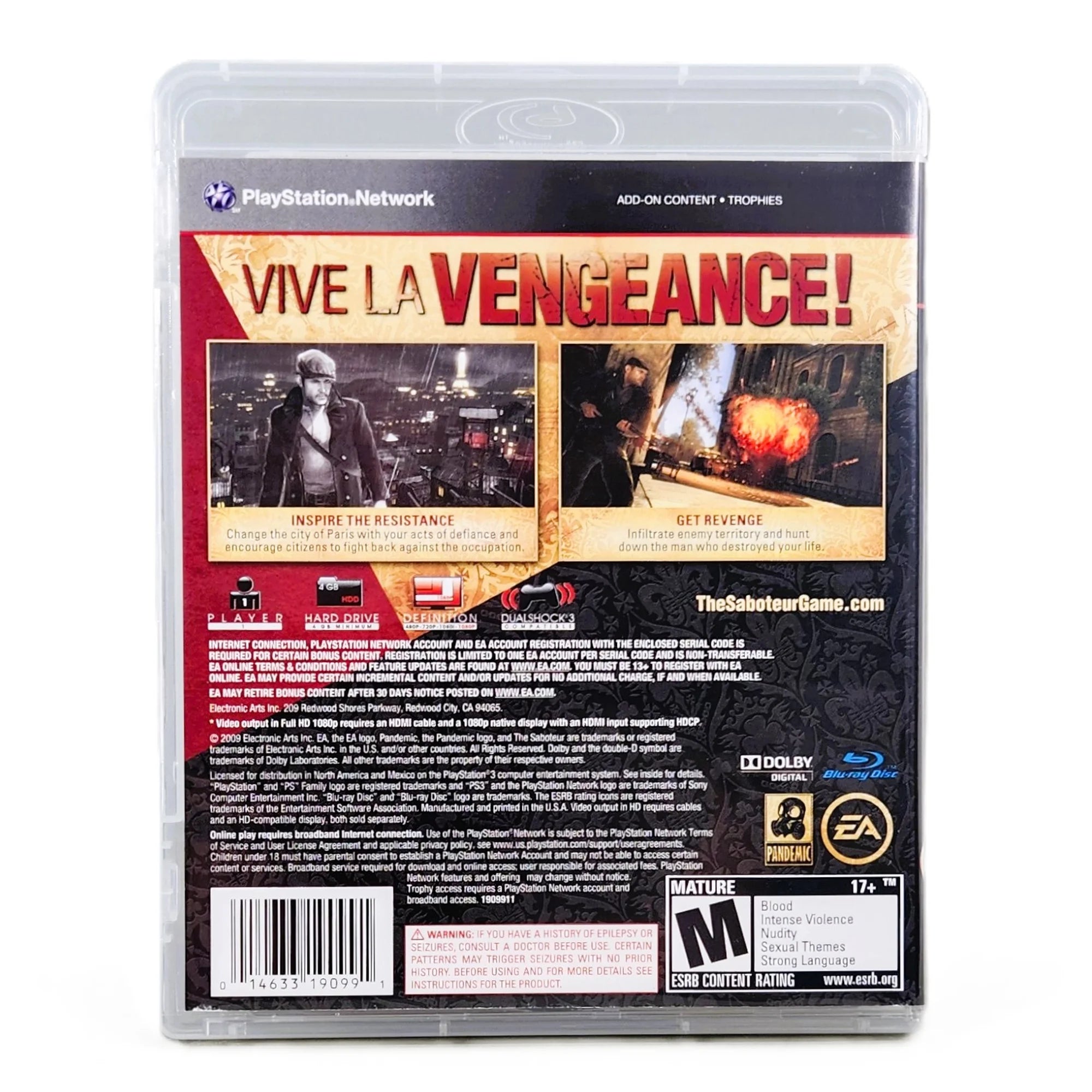 - Notes: Like-new copy of The Saboteur for PlayStation 3 housed in a brand-new aftermarket replacement case with manual and artwork included; disc is spotless and fully tested. The moody, noir-inspired artwork looks sharp and stylish, giving this cult classic excellent shelf presence.