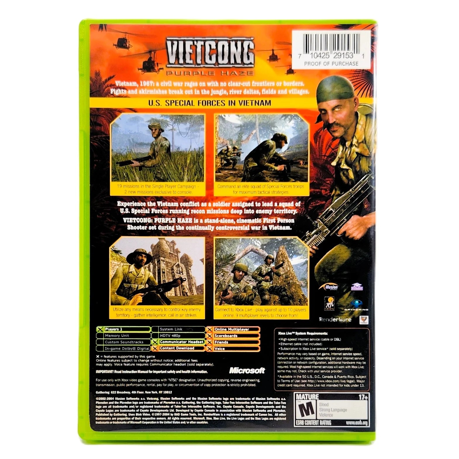 This immersive Vietnam War shooter for the original Xbox console emphasizes tactical combat and squad coordination as players navigate thick jungle environments, underground tunnel systems, and remote enemy camps. Missions range from reconnaissance patrols and prisoner rescues to large-scale firefights against Viet Cong forces. Authentic weapons such as the M16 rifle, M60 machine gun, and AK-47 bring the battlefield to life as players battle through some of the most dangerous terrain of the war.