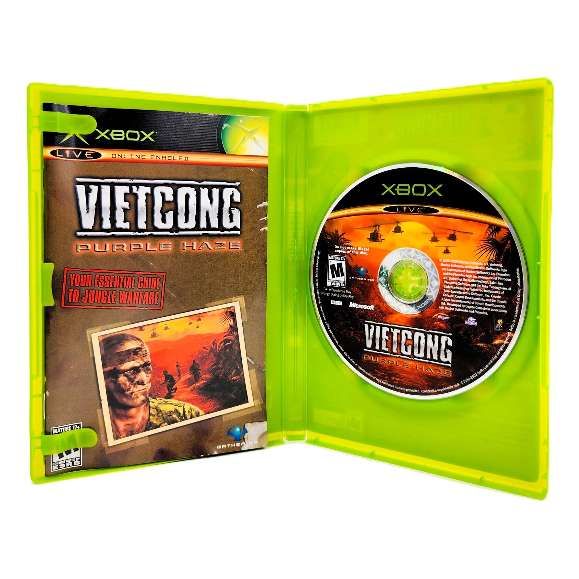 - Notes: A very well-kept copy of Vietcong: Purple Haze with original artwork and manual included, paired with an aftermarket replacement case; the disc remains scratch-free and has been tested working. Presents nicely and is ready for another tense trek through the dense jungles of Vietnam.
